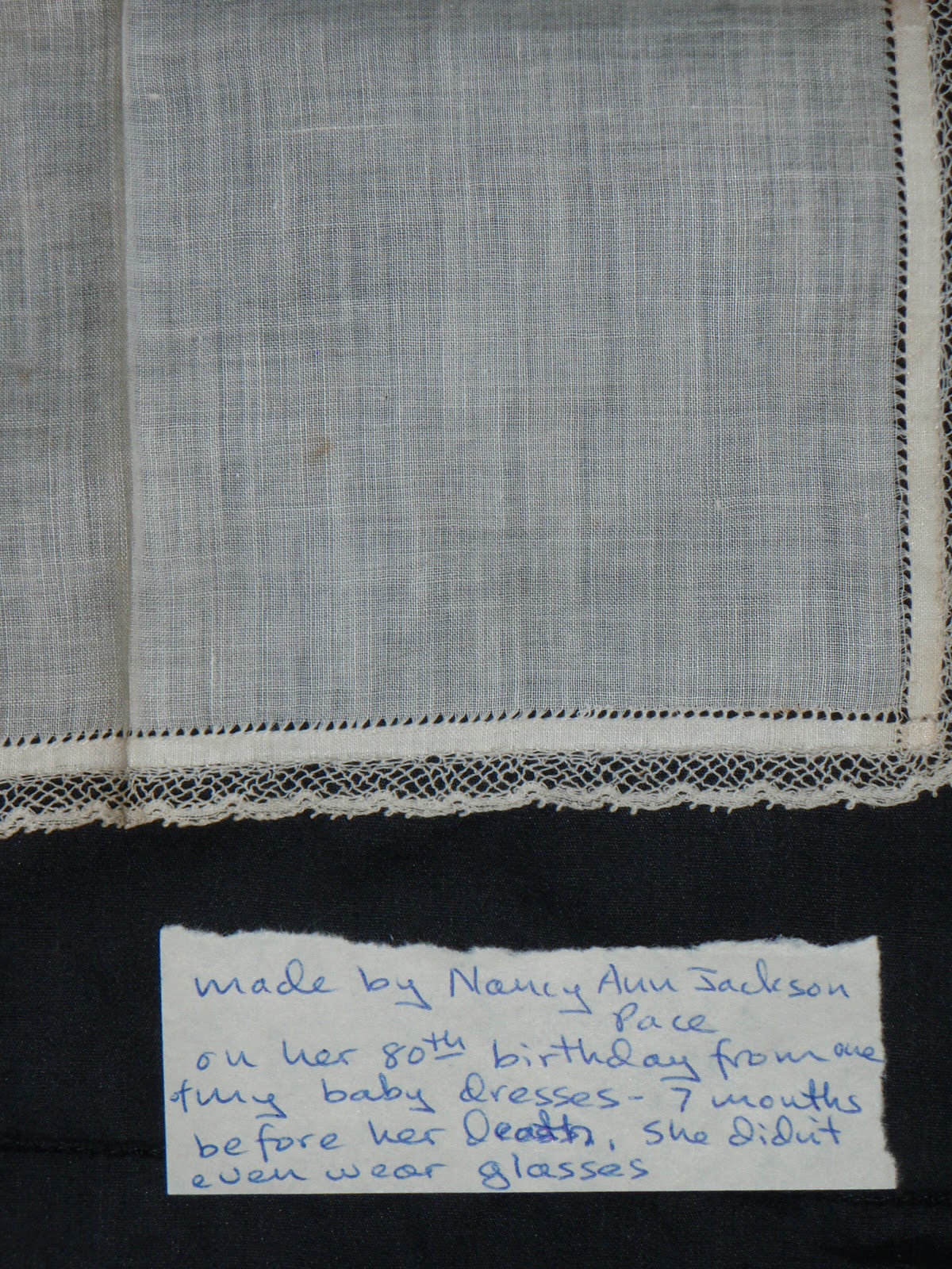 ReplyDeleteEleven looks like Saba Lace to me. I am not at all a lace expert, but I live on the island of Saba and have recently begun joining the Saba Lace ladies (along with my 7-year-old daughter) and learning to do lace. I'm not familiar with the name that is on the note (I only moved here a few years ago; not a local), but I the technique looks similar to here. Hope that helps a bit.